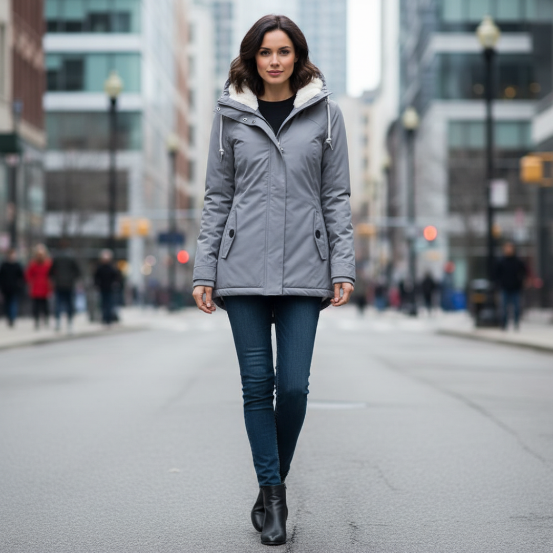 La giacca lunga impermeabile Eleonora con cappuccio e fodera è la scelta ideale per affrontare pioggia, vento e basse temperature con stile. Progettata per offrire protezione e comfort quotidiano, unisce una linea elegante a materiali funzionali, mantenendoti asciutta, al caldo e sempre impeccabile.